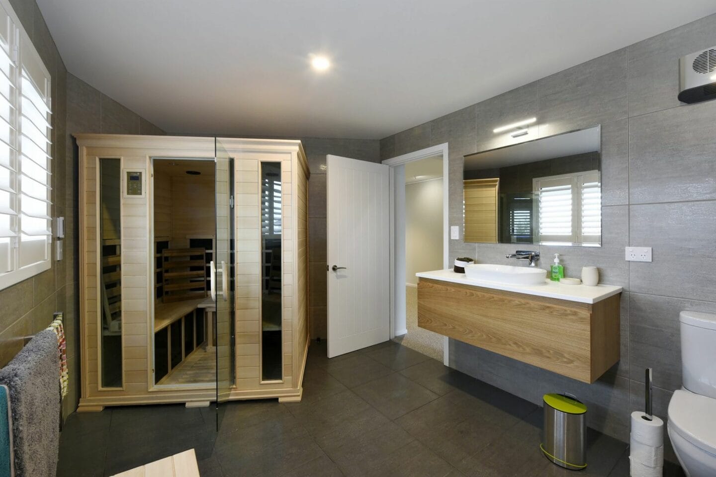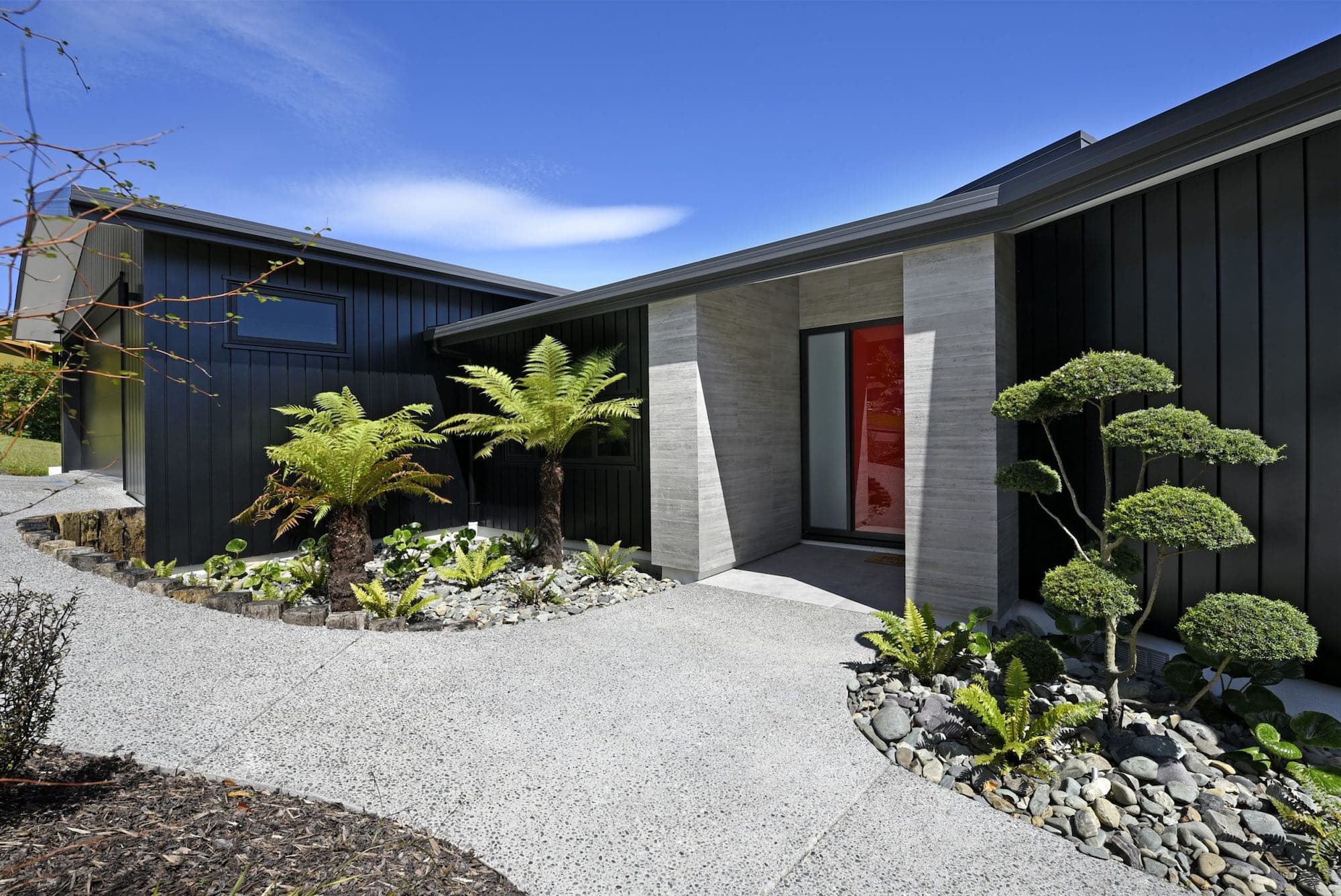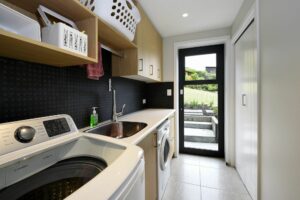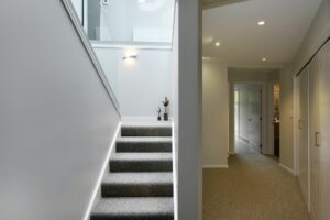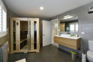 This home too received a full renovation, including an extension for a new kitchen. The house was re-clad in a mixture of weatherboard and other board. The downstairs renovation included adding a home gymnasium and sauna.